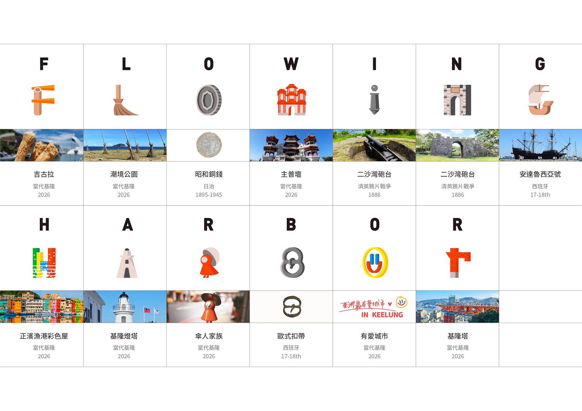 Each icon serves as a fragment of memory and perception drawn from Keelung’s past, shaping its cultural character and future outlook. Flowing in rhythmic motion like the tides, these symbols connect the city and the world, reflecting Keelung’s distinctive spirit and its continuous momentum toward the future.